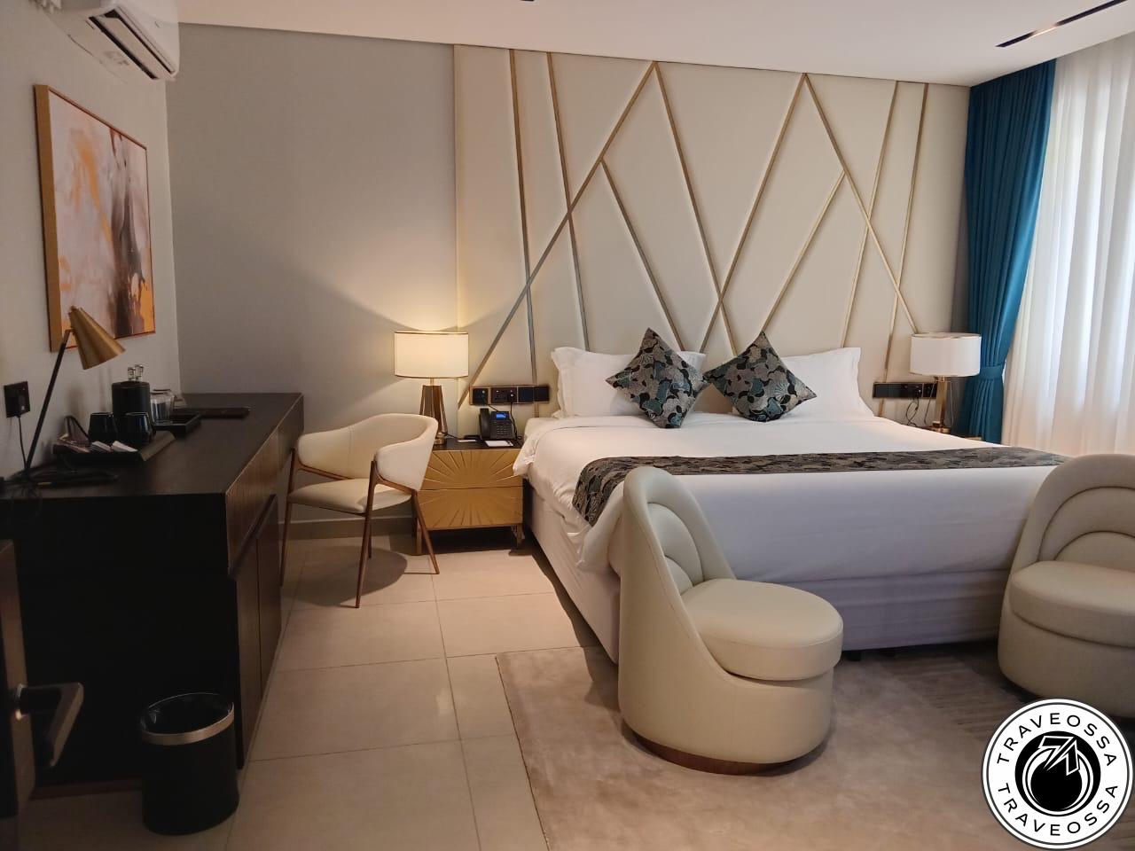 - King-size bed, smart TV, in-room safe deposit box, tea & coffee station, mini fridge, writing bureau, walk-in shower, bathrobes & slippers, hairdryer, Wi-Fi### Deluxe Room