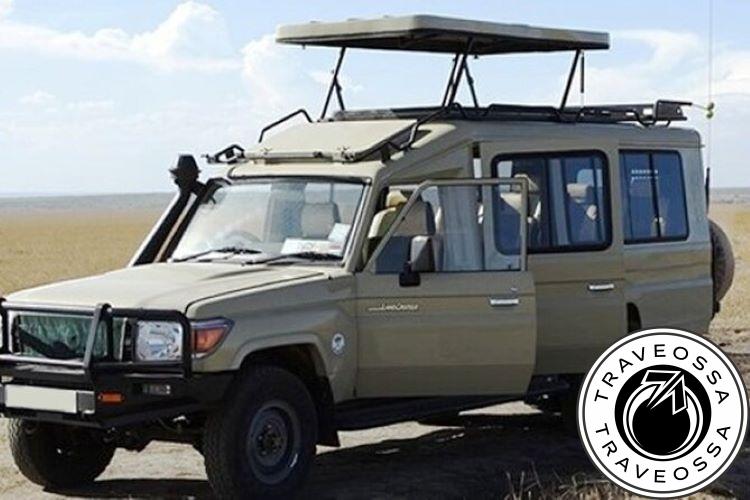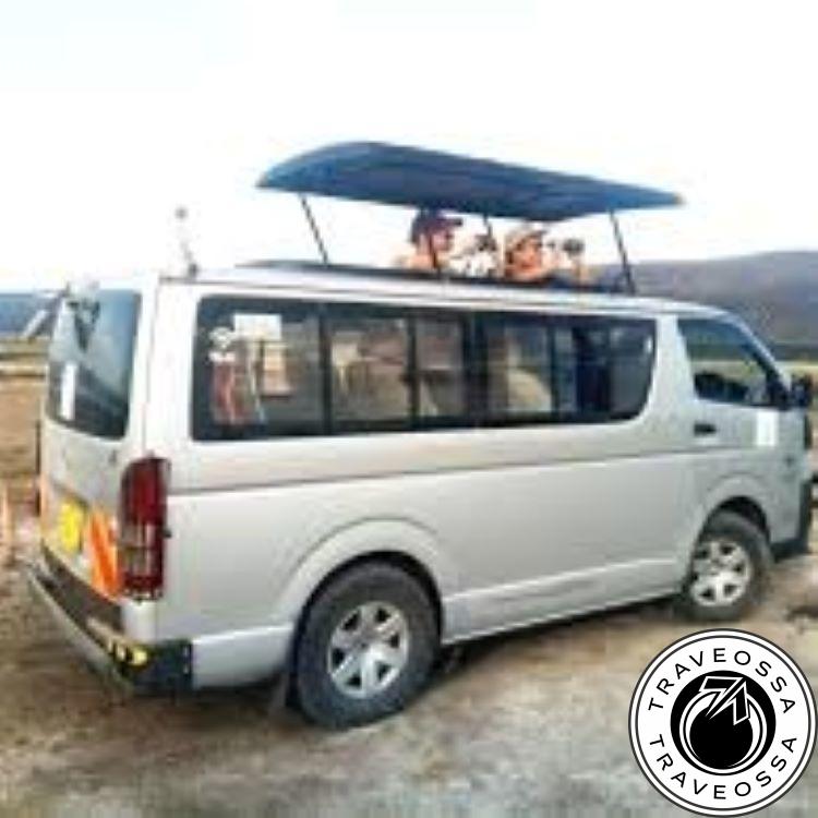 - Transport in a safari van with pop-up roof