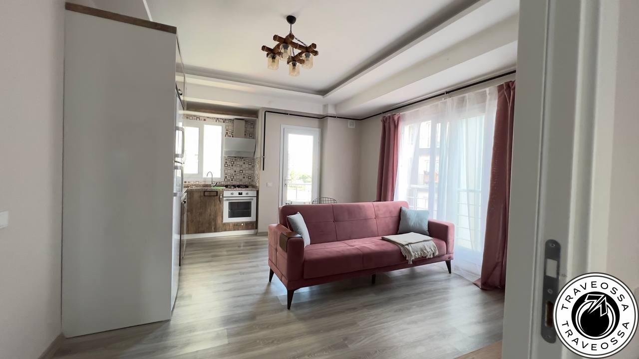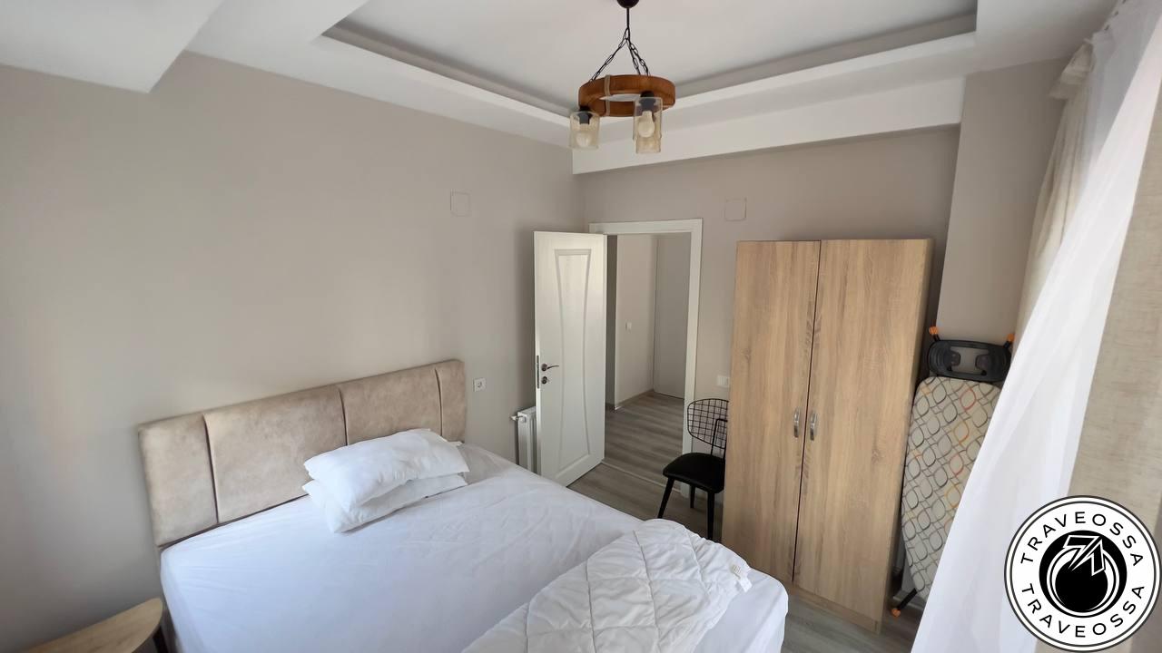 - Amenities: fully furnished; TV; air conditioner; dishwasher; washing machine; large fridge; oven & gas stove with hood; microwave; iron & board; sofa-bed; orthopedic mattress; wardrobe; linens & towels; free Güneş water heating; on-demand water heater; high-speed internet