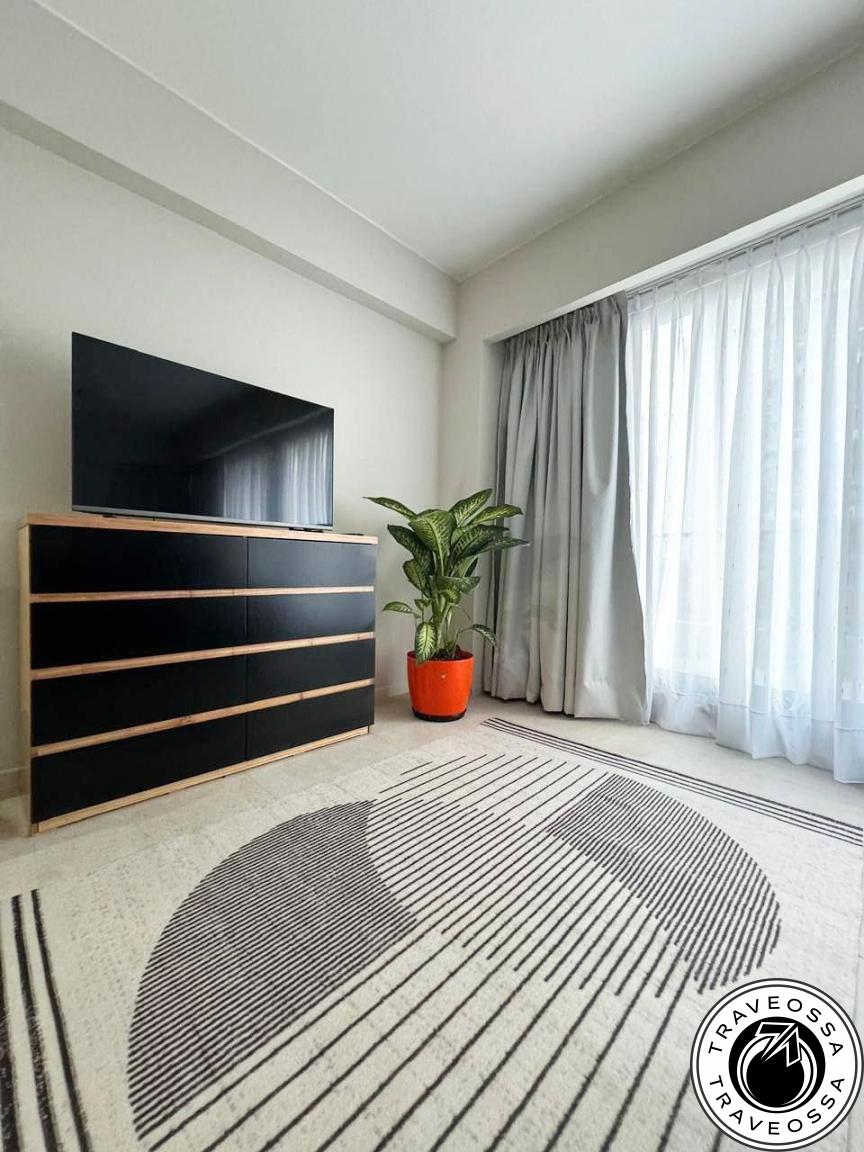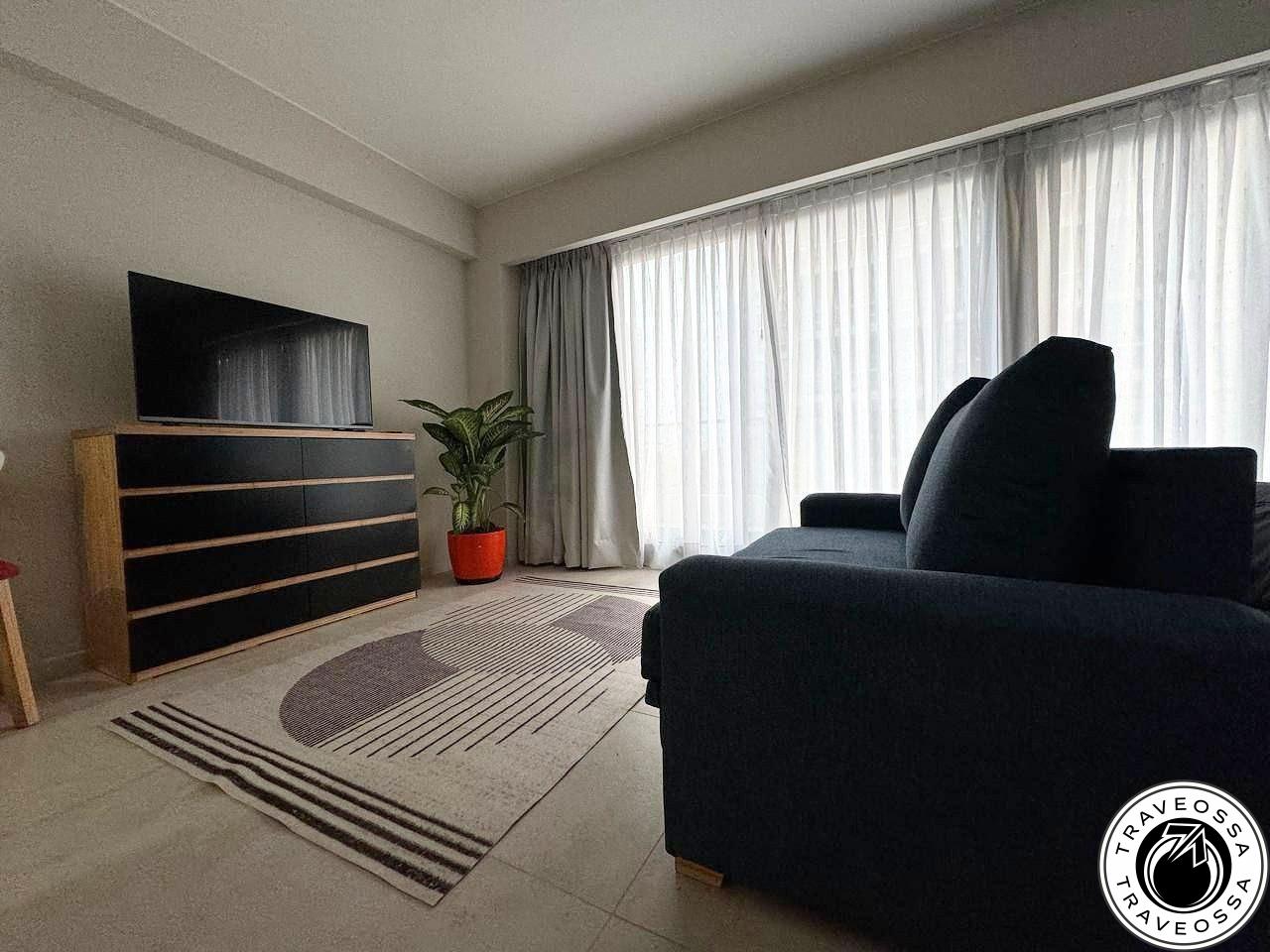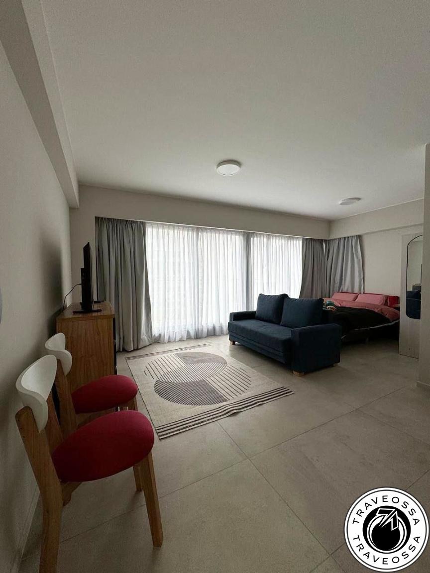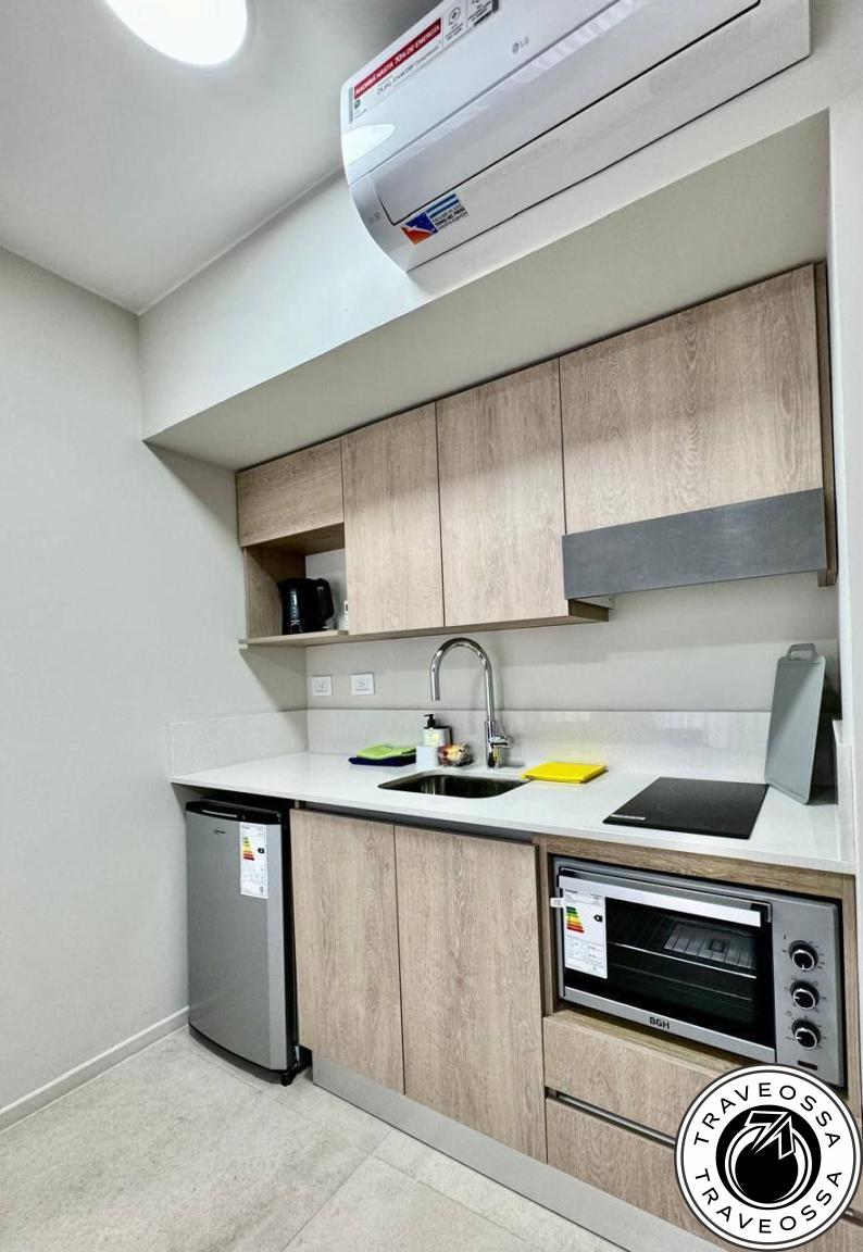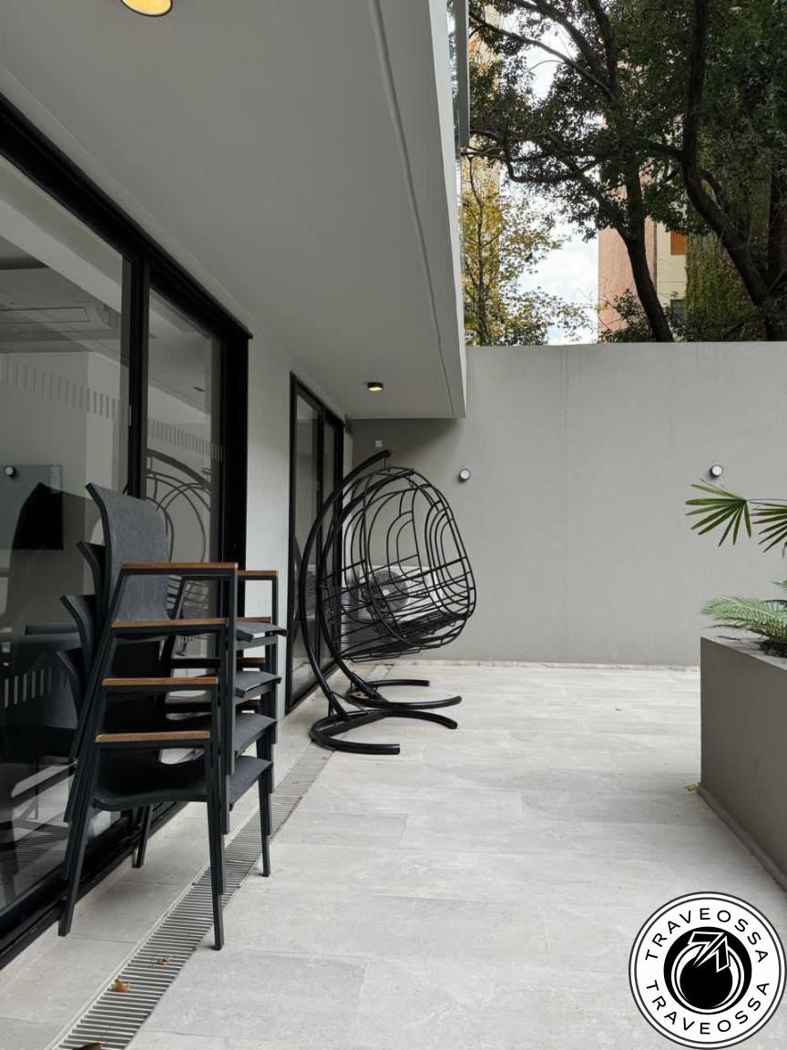 - About: New, cozy, stylish studio with large terrace and city views. Features sofa bed (with extra mattress), double bed, full appliances (including hairdryer and iron), washing machine, fully equipped kitchen, high-speed Wi-Fi, linens, extra blanket, orthopedic pillows, two bedding sets, extra towels, terrace table and chairs, live plants, air conditioning (heat/cool), underfloor electric heating. One-year lease qualifies for a built-in grill (parrilla).