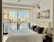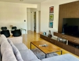 - About: Bright, modern apartment with two rooms and a balcony. Living room includes a sofa, dining area, air conditioning, and Smart TV. Separate fully equipped kitchen with a washing machine. Bedroom features a double bed, walk-in closet, workspace, Smart TV, and air conditioning. Bathroom with bathtub and guest toilet. Underfloor heating throughout.