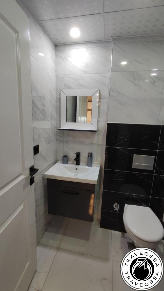 Enjoy coastal living in this fully furnished 1-bedroom apartment with a huge terrace, top-quality Arçelik appliances and two air conditioners. Located on the 1st Turkish floor of a new 7-storey building, just steps from the eucalyptus park and beach.