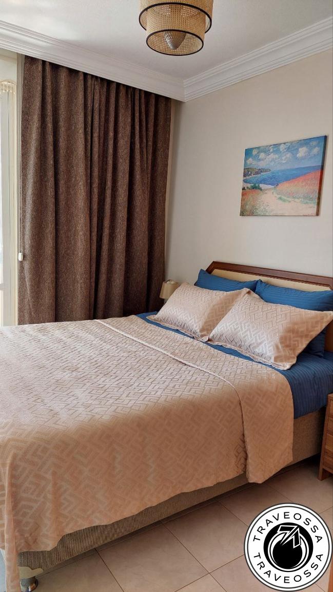 - Amenities: fully equipped kitchen with Arçelik appliances; two bathrooms; two SMART TVs; double bed 160×200; wardrobe; two air conditioners