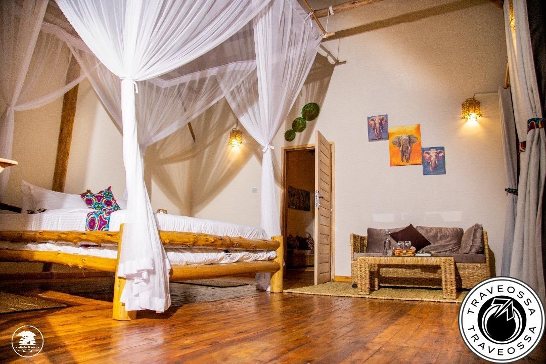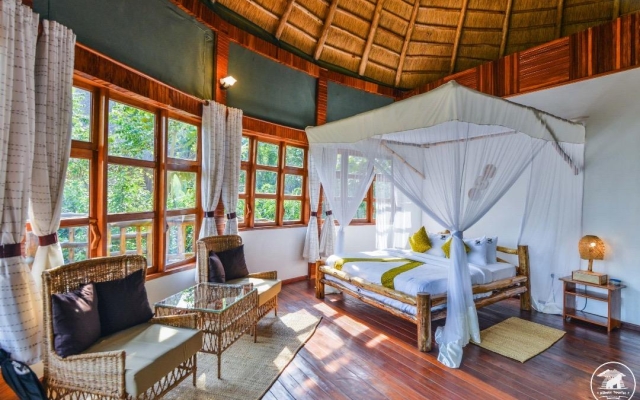 The lodge features 5 elegant and comfortable cottages, including 1 family cottage, with breathtaking views of the surrounding landscape. Each cottage is designed in African traditional style with natural materials and local woods, and comes with¹: