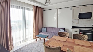 Bright and modern, this 1+1 apartment in the Kuyulu...